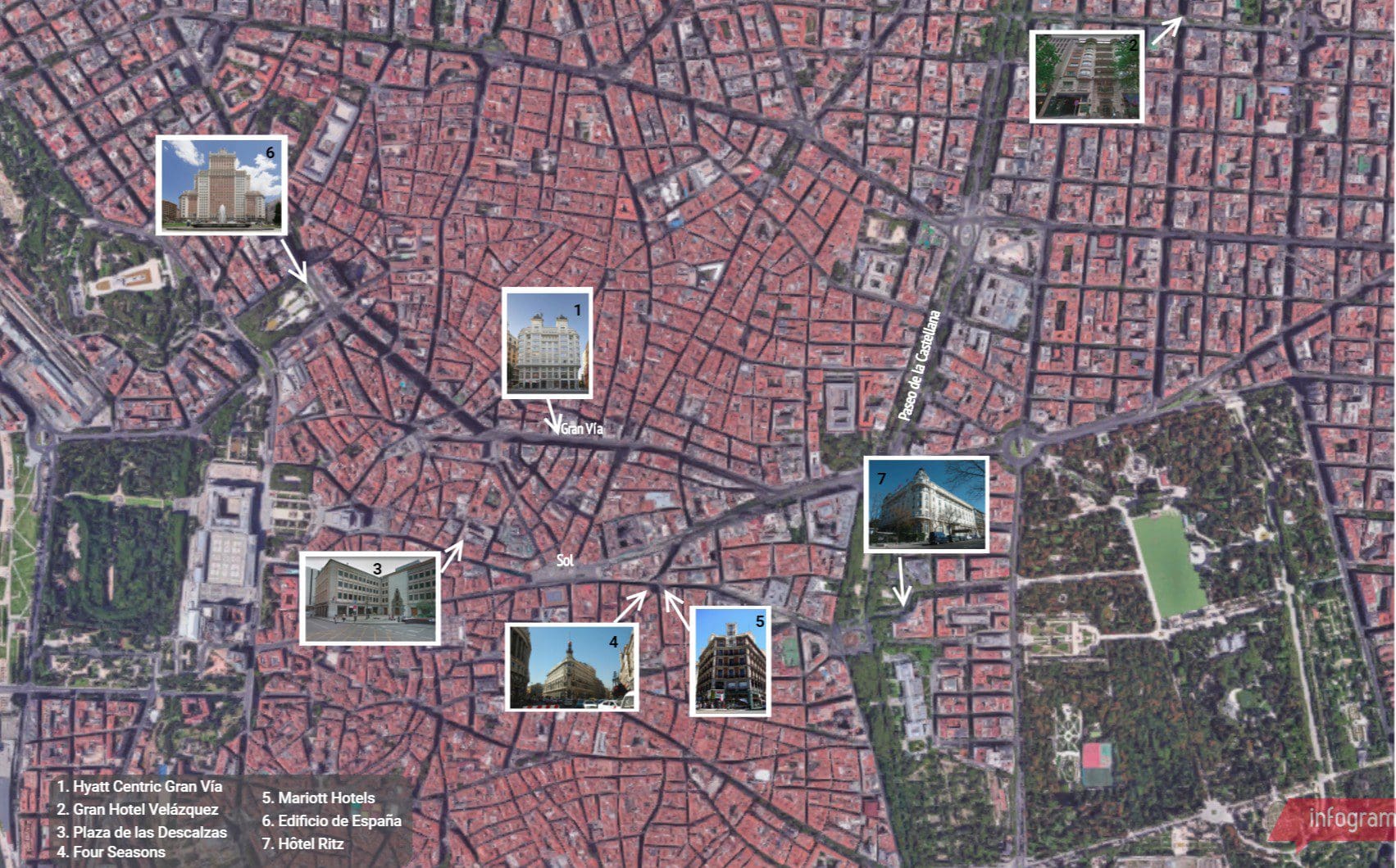 Boudée depuis quelques années par les groupes hôteliers de luxe, Madrid attire de nouveau les projets. En 2018 et 2019, sept projets devraient se concrétiser.