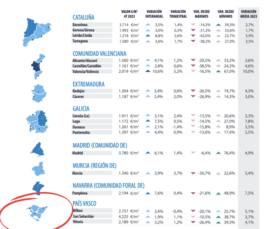 Avec un PIB par habitant dépassant largement la moyenne de l’Union européenne, le Pays Basque espagnol a surpassé même la Communauté de Madrid (indice 139 en 2007). Cette avancée historique marque un changement significatif, rompant avec la prédominance habituelle de la capitale comme la région la plus riche du pays.