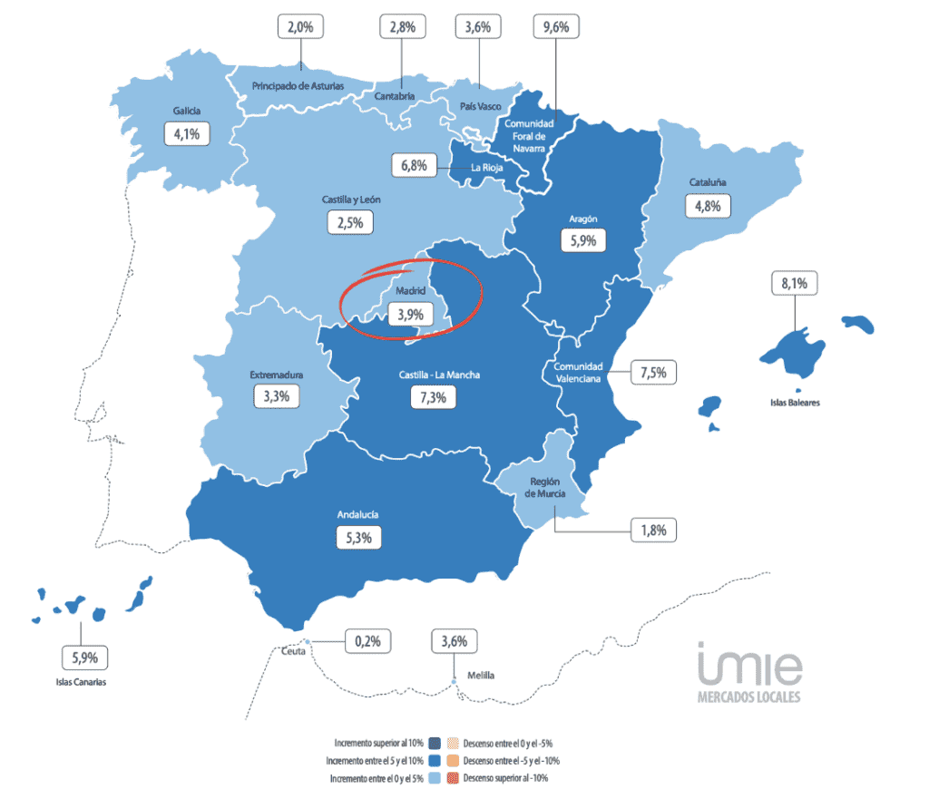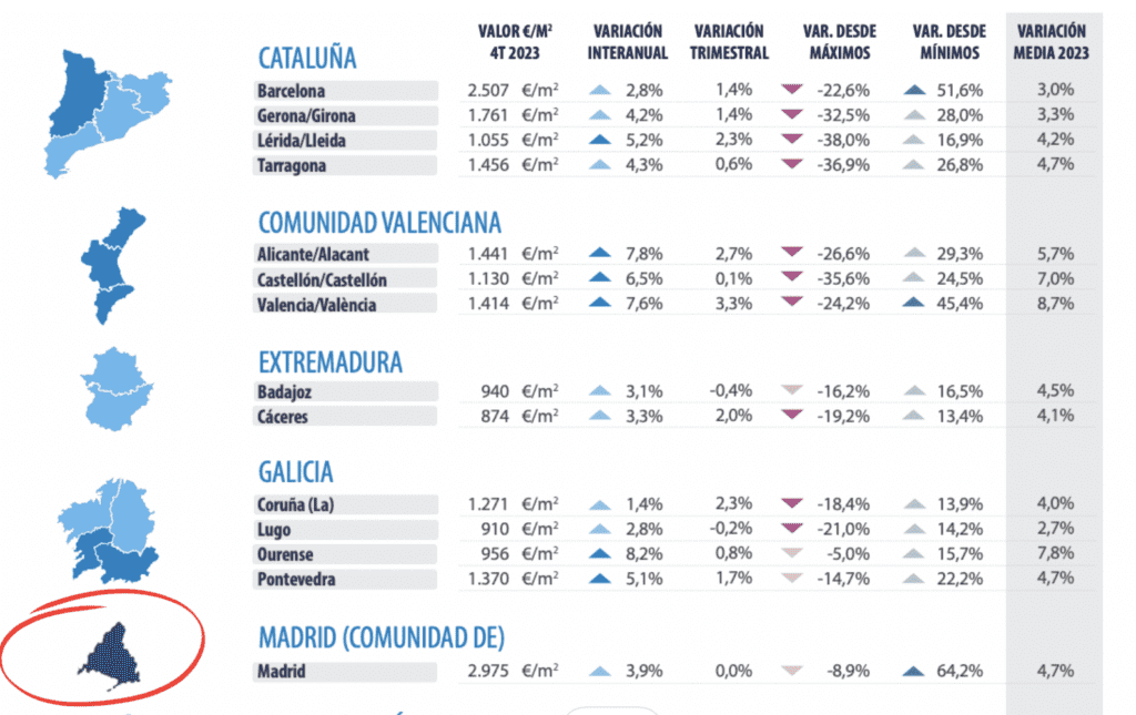 Évolution interannuelle de la valeur moyenne par communauté autonome en 2023