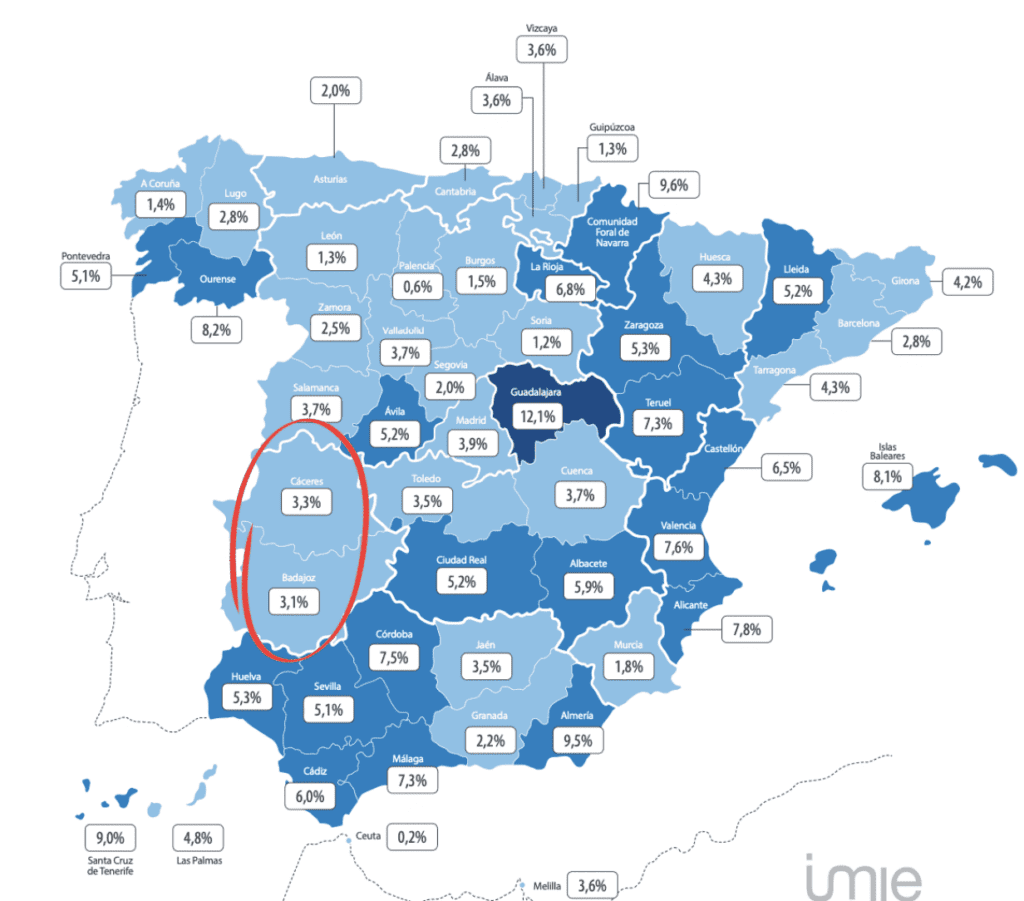 L’Estrémadure est une communauté autonome située dans le sud-ouest de l’Espagne, partageant des frontières avec le Portugal à l’ouest, l’Andalousie au sud, la Castille-La Manche à l’est, et la Castille-et-León au nord. La région est composée de 2 provinces, Caceres au nord et Badajoz au sud. L’Estrémadure abrite une population de plus d’un million d’habitants.