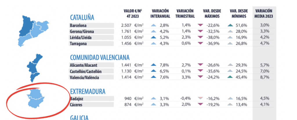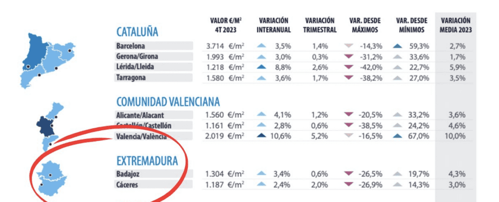 Évolution interannuelle de la valeur moyenne par communauté autonome en 2023