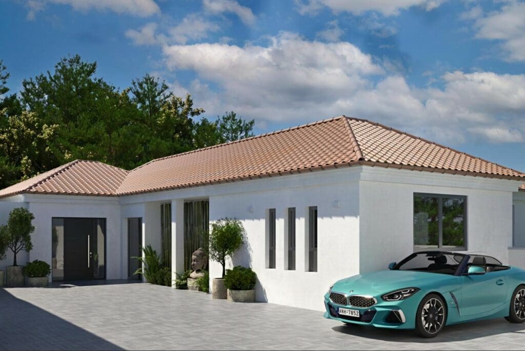 Construction nouvelle – Dressing – Climatisation – Alarme – Antenne TV – Placards encastrés – Cuisine équipée – Extracteur de fumée – Garage indépendant – Jardin