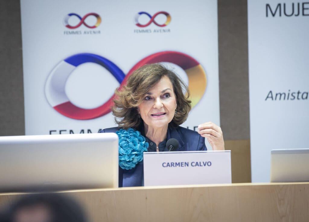 Pour Carmen Calvo, « l’approche de l’égalité entre les hommes et les femmes dans la Constitution espagnole est très mal reflétée. C’est pourquoi un groupe de femmes travaille sur une proposition visant à lancer une réforme constitutionnelle dans une perspective d’égalité entre les hommes et les femmes. Cette réforme porterait sur l’ensemble de la Constitution, en révisant tous les articles, afin que l’égalité devienne un principe directeur. Cela établira l’obligation pour les femmes et les hommes d’être traités sur un pied d’égalité dans toutes les sphères de la vie, et il est essentiel de comprendre l’importance de travailler sans relâche pour y parvenir ».