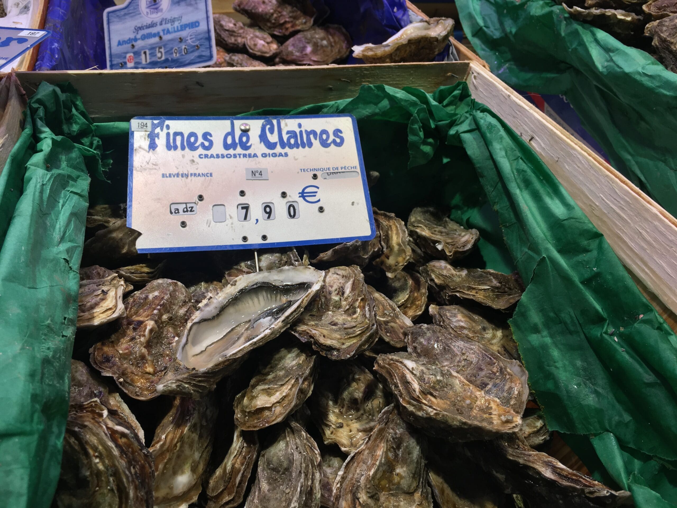 Ici, dans la chic banlieue de l’ouest parisien, elles ont proposées à 8 euros la douzaine sur un marché. (Ouverture comprise). Alors qu’en Espagne, pourtant pas si loin du bassin d’Arcachon, on les trouve à plus de 22 euros la douzaine, soit 3x plus cher. Voire 50 euros la douzaine dans certains pseudo bars à huîtres d’hôtel. Une belle frustration.