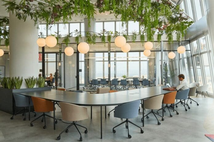 L’espace Next Floor, une ligne de coworking d’Emperador Properties ; Il compte 1.200 mètres carrés, 21 hot spots, 92 bureaux et 6 salles de réunion. (Brainsre.news)