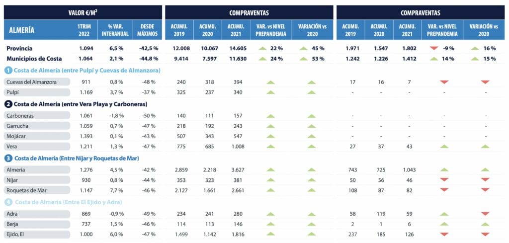 Le marché côtier d’Almeria a l’un des poids les plus élevés sur le total de la province, représentant 80 % des ventes et 78 % du total des approbations dans la province.