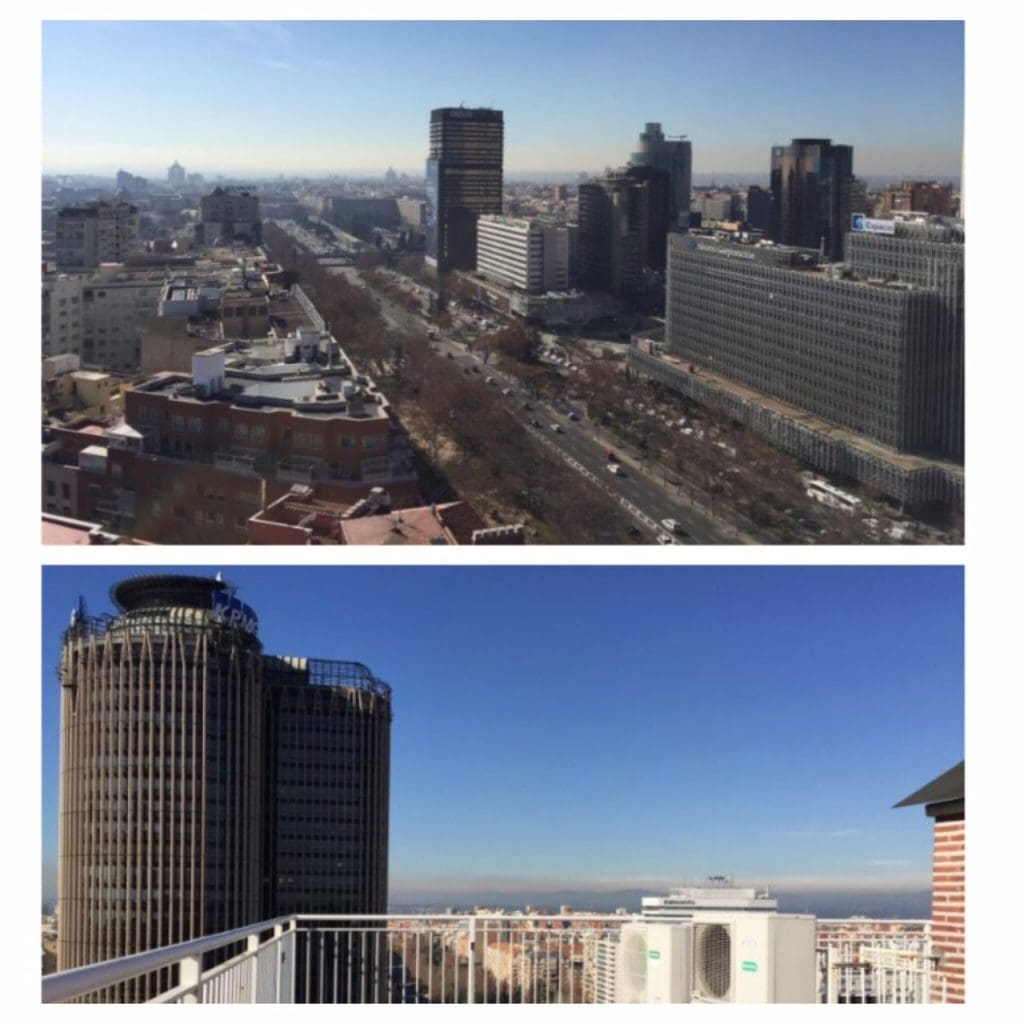 Le duplex est situé en haut d’une tour qui surplombe le stade du Bernabeu et qui offre aussi une vue incroyable et unique sur la capitale espagnole ainsi que sur la chaîne de montagne de Madrid.