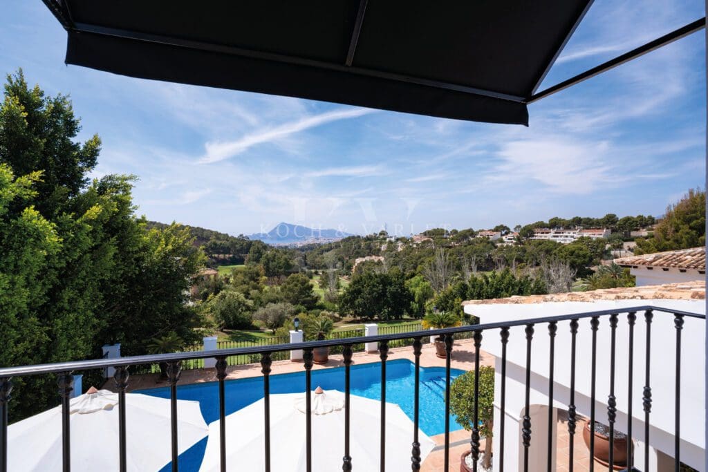 La Villa Cortesin, représentée par Koch & Varlet Luxury Realtors, est un véritable joyau immobilier. Nichée sur les collines verdoyantes du parcours de golf exclusif d’Altea la Vella, elle se trouve en première ligne du golf et offre une vue panoramique imprenable sur la mer Méditerranée et le terrain de golf.