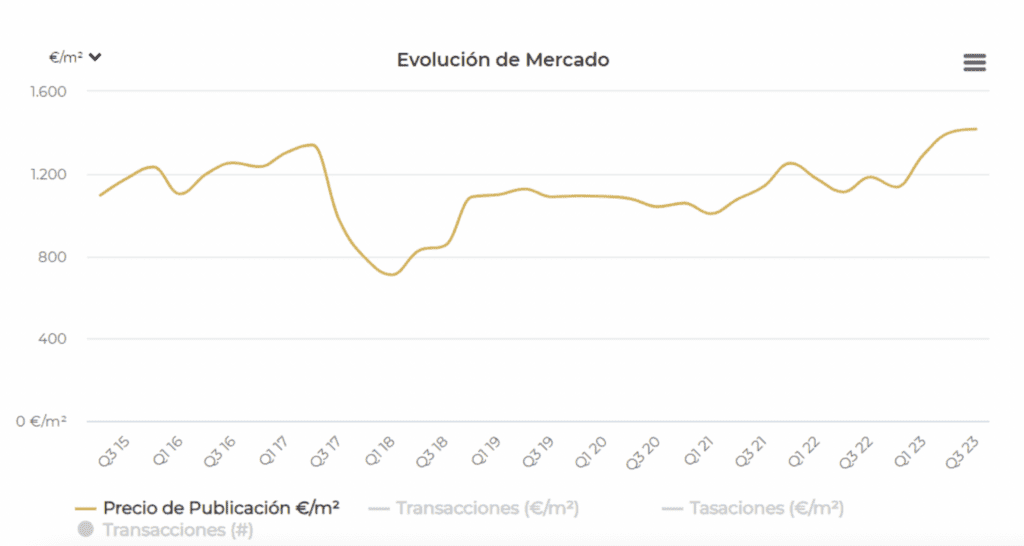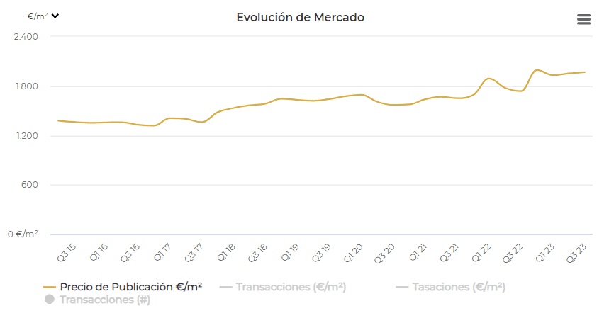 D’autre part, si nous voulons acheter une propriété dans cette zone de la région, nous devons débourser en moyenne 471.964€, une valeur qui a augmenté de façon exponentielle au cours des trois derniers mois et qui est également élevée en raison du fait que les maisons ont une superficie moyenne de 298 m2.