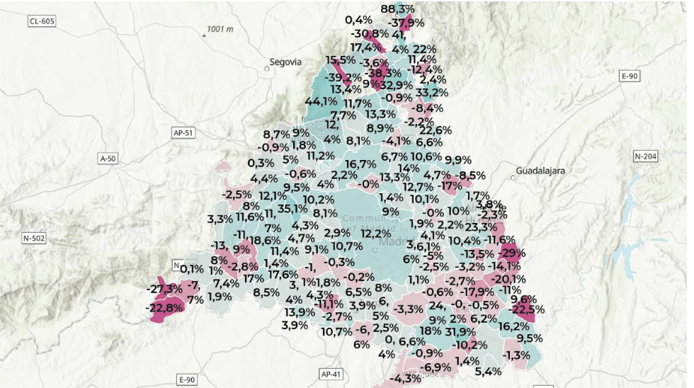 Top 5 des municipalités de la Communauté de Madrid avec la plus forte croissance des prix