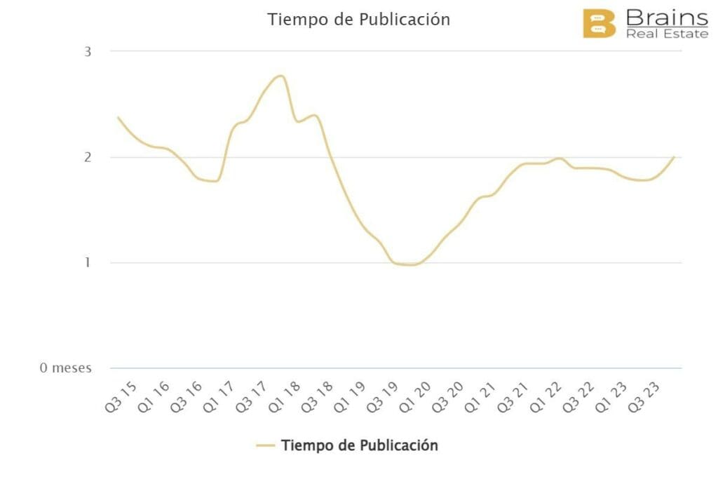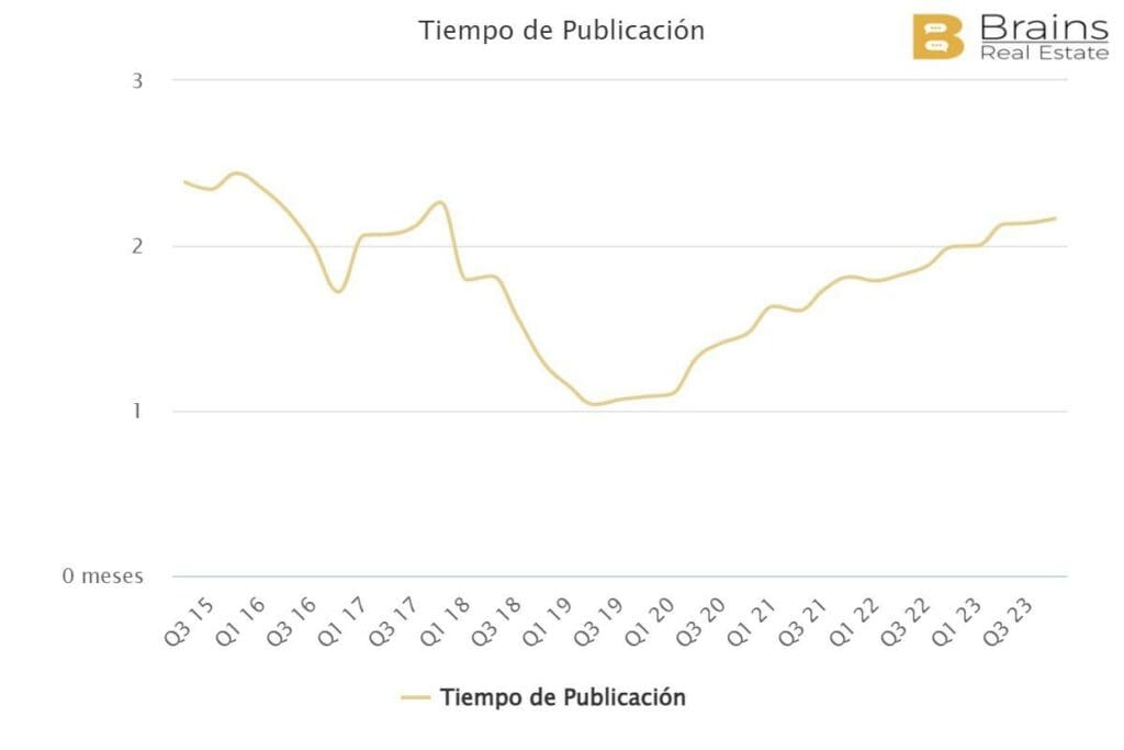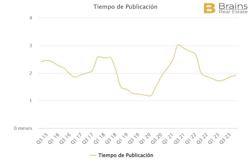 En Espagne, la durée moyenne de mise en vente d’un bien immobilier, c’est-à-dire la période qu’un bien passe sur le marché jusqu’à ce qu’il soit loué, est actuellement de 3,2 mois, selon les données de la plateforme de big data immobilière Brains Real Estate.