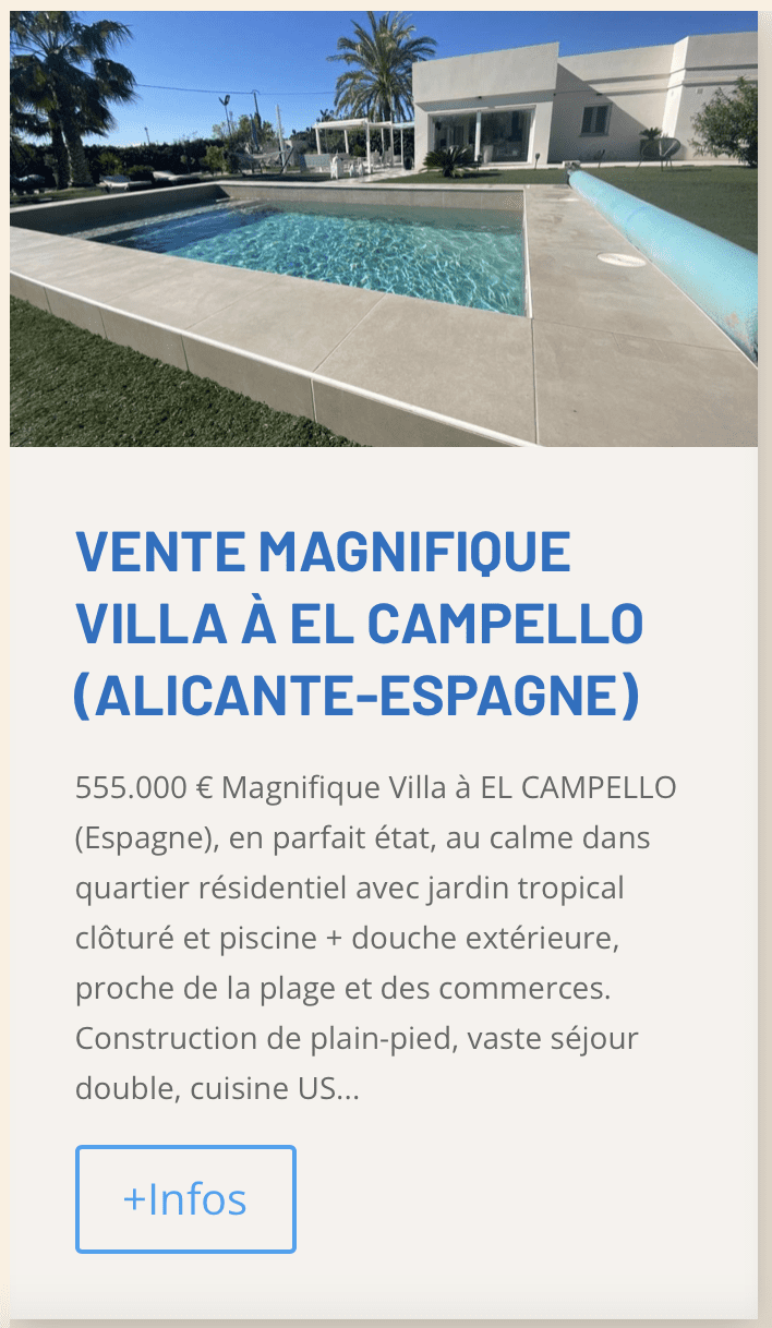 - Vous êtes déjà propriétaire d’un bien sur la Costa Blanca et vous souhaitez maintenant en tirer un revenu lorsque vous êtes absent: confiez-nous en la gestion locative saisonnière, nous nous chargerons de remplir votre calendrier annuel en dehors de votre temps de présence.