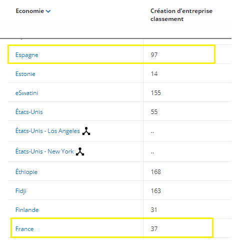 En tête de ce classement, on retrouve la Nouvelle-Zélande (1er), Singapour (2ème), et Hong-Kong (3ème). Quelques rangs plus loin, l’Espagne (30ème) se classe devant la France (32ème).