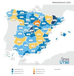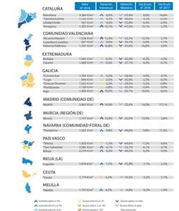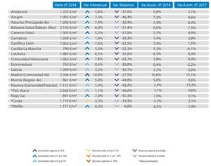 Parmi les provinces présentant la plus forte variation annuelle au quatrième trimestre de 2018, en plus de Madrid, Malaga et Valence; Lleida et Burgos ont atteint des augmentations de plus de 9%. Jusqu’à vingt provinces affichent des augmentations supérieures à 5%