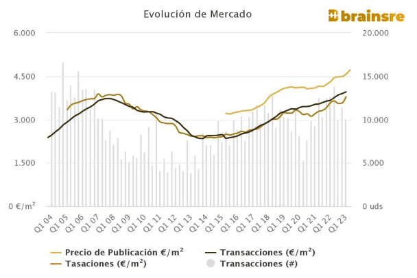 Le prix de vente des logements à Madrid a augmenté de manière ininterrompue depuis le troisième trimestre de 2021, atteignant actuellement 4.712 euros par m2 et se situant à un niveau record.