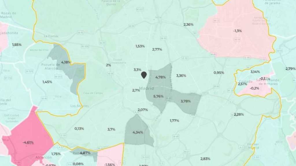 Tous les quartiers qui composent la ville de Madrid ont enregistré une augmentation des prix des logements au cours du dernier trimestre, à l’exception de Barajas, dont le prix a baissé de 1,3%.