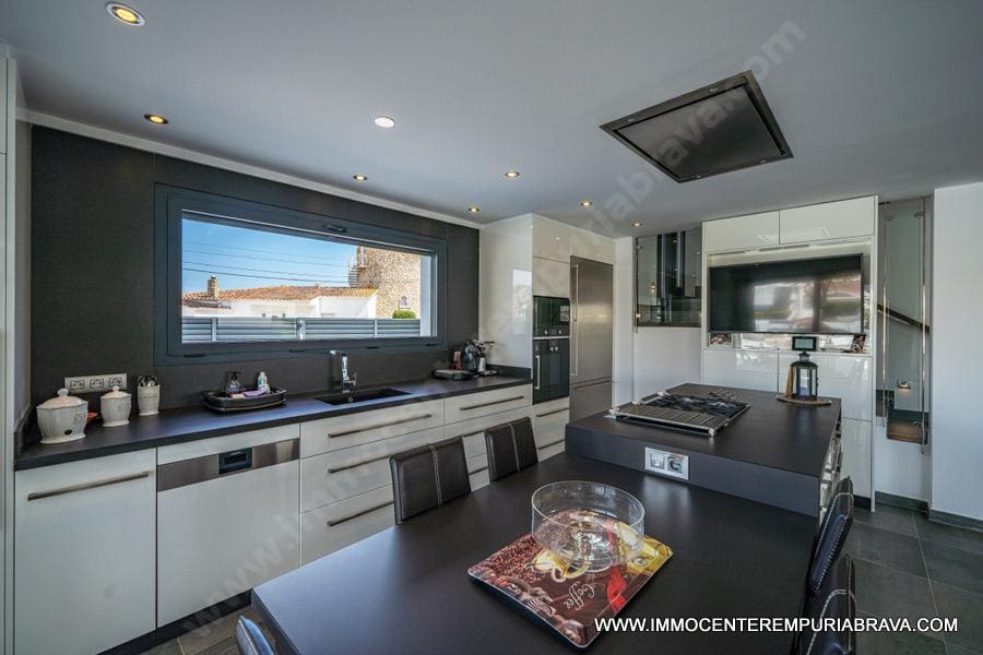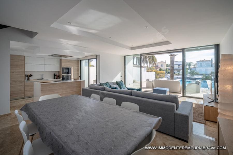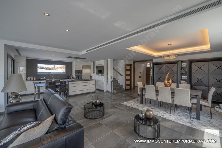 Cette sublime villa avec vue sur mer se situe à proximité de la plage, du port et du centre de Roses. Elle est composée de 6 chambres sur 2 étages : au rez-de-chaussée, vous trouverez un confortable séjour ensoleillé grâce à ses grandes baies vitrées qui s’ouvrent sur différentes terrasses. Vous y trouverez également une fabuleuse cuisine totalement équipée avec osmoseur, frigo américain, cave à vin etc.