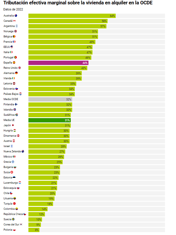 L’étude consacrée à la fiscalité du logement, réalisée par l’IEE (Institut espagnol de la statistique et du recensement), en collaboration avec le Registre des économistes conseillers fiscaux (REAF), qui fait partie du Conseil général des économistes d’Espagne, analyse le taux marginal d’imposition effectif, qui mesure les incitations fiscales à l’investissement immobilier. Le taux de chômage en Espagne s’élève à 44 %, soit plus de 10 points de pourcentage au-dessus de la moyenne de l’OCDE (32 %) et de la moyenne de l’UE (31 %). Il s’agit du dixième pire résultat du classement.