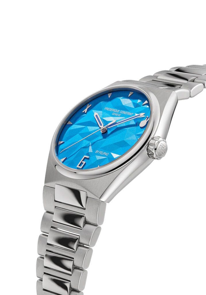 La collection Highlife renouvelée a été choisie pour faire l’objet d’une intervention du sculpteur espagnol Felipao. Il s’agit d’une édition limitée numérotée de 100 pièces, présentée dans un boîtier tripartite en acier poli et satiné de 41 mm de diamètre avec un cadran en céramique polyédrique bleu conçu par Felipao. Le cadran combine trois symboles représentatifs de trois moments importants de l’histoire : le présent, représenté par l’émoticône de la paix, le 6 hérité des chiffres arabes et le X des chiffres romains.