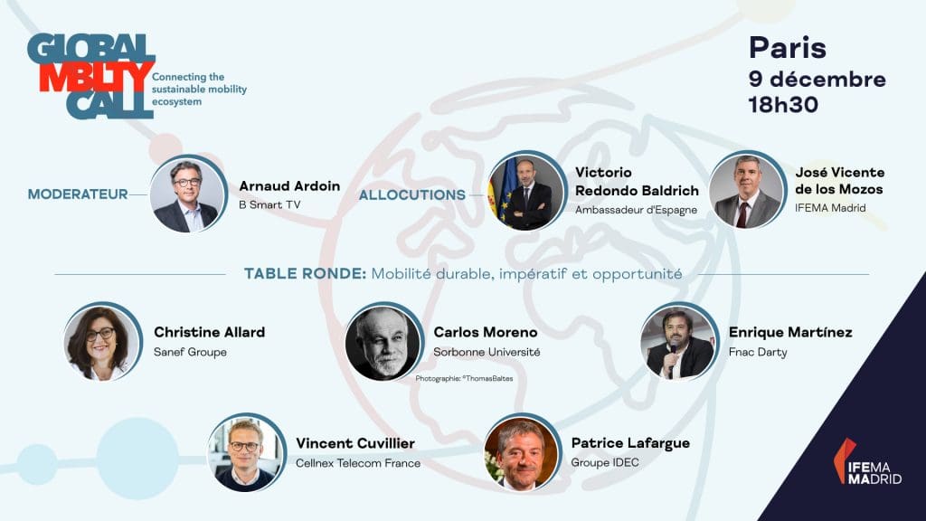 Global Mobility Call sera le grand rendez-vous mondial de la mobilité durable, dans le contexte de la relance économique et sociale post pandémie. À Madrid du 14 au 16 juin 2022, Global Mobility Call réunira les leaders de tous les secteurs impliqués dans le développement des politiques de mobilité durable et d’initiatives commerciales dans ce domaine.
