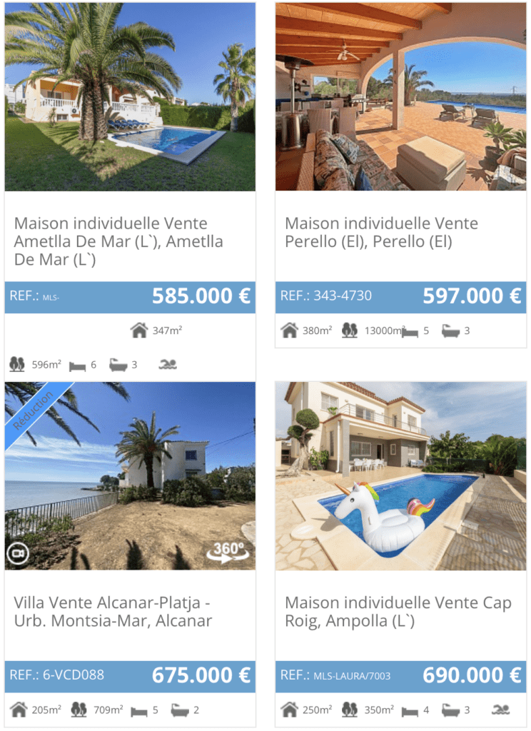 Quelques exemples de biens à la vente
