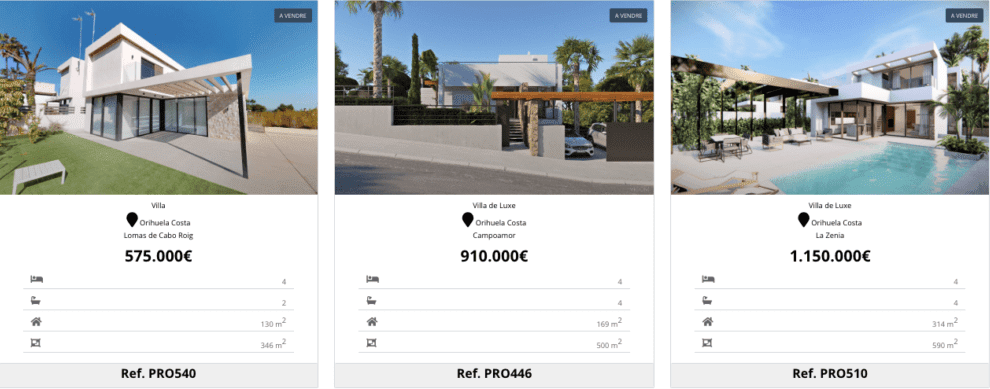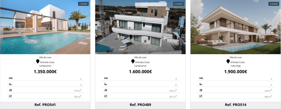 Leur vaste portefeuille de propriétés comprend des maisons à Campoamor, La Zenia, Playa Flamenca, Cabo Roig, Villamartín, Torrevieja et La Mata. Ils proposent une variété de biens immobiliers, allant des maisons neuves aux propriétés d’occasion telles que des appartements avec vue sur la mer, des chalets de luxe, des bungalows et des duplex avec terrain.