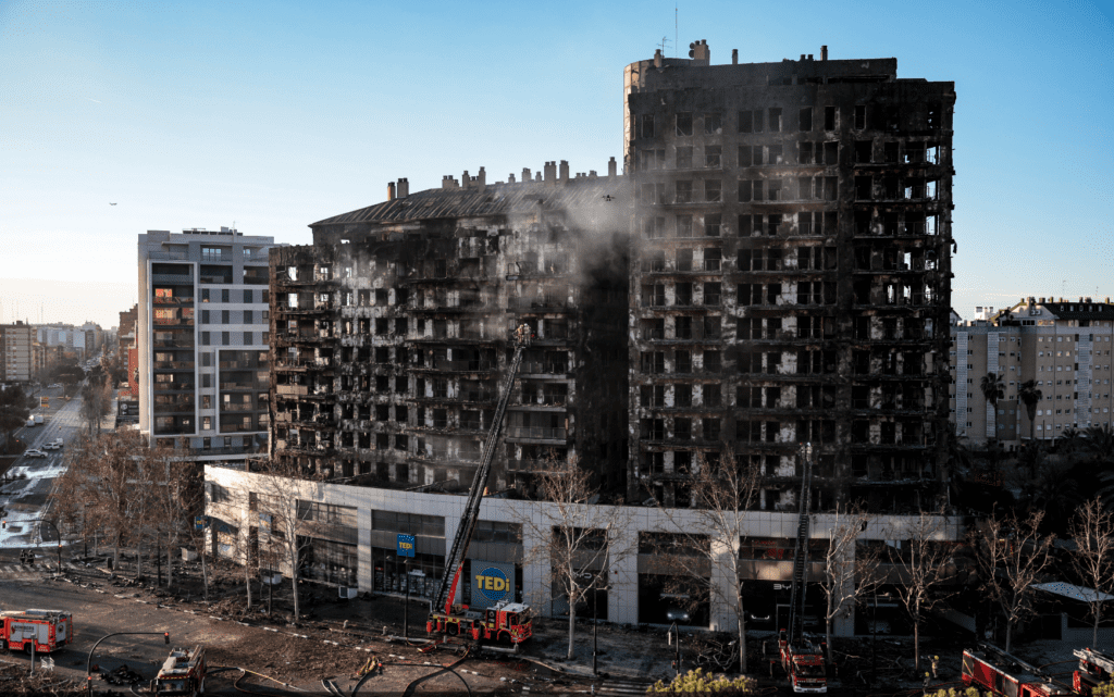 La partie extérieure de cet immeuble, faite de plusieurs couches de matériaux isolant, certains à base de polyuréthane, de fibre de roche ou de résine a eu un « effet de cheminée et a favorisé la propagation du feu” selon le président de l’Ordre officiel des architectes de Valencia, Luis Sendra. Cet immeuble a été construit entre 2005 et 2008 par le promoteur Fbex (qui a fait faillite en 2022), en pleine période de bulle et folie immobilière : à cette époque, il n’y avait pas autant de restrictions sur les matériaux pour les façades et le mobilier de terrasse ; les réglementations anti-incendie actuellement en vigueur ont été consolidées plus tard, en 2011. Ce drame rappelle celui de juin 2017, à Londres, lorsque la tour Grenfell s’était enflammé comme une torche, les flammes se propageant à grande vitesse à cause du revêtement posé sur la façade.