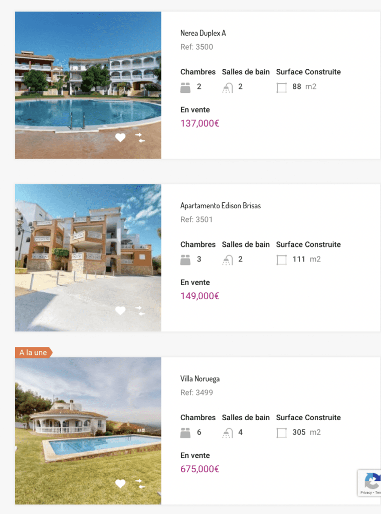 Des exemples de biens à la vente
