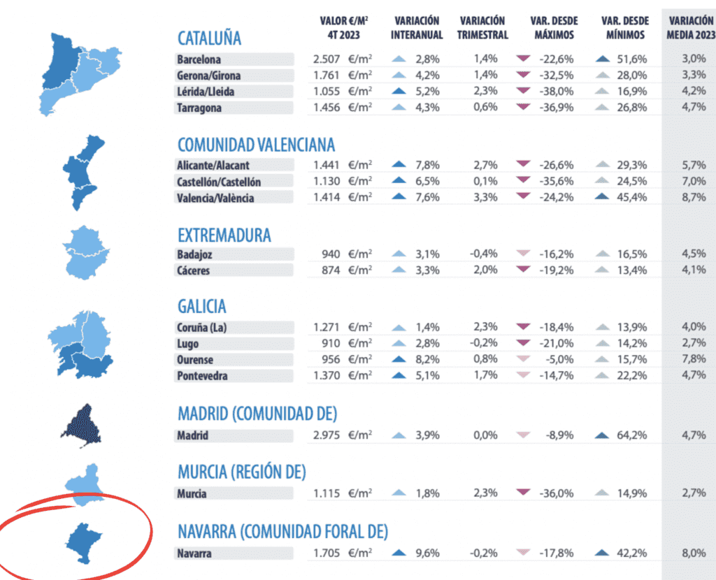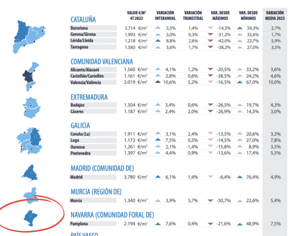 Évolution interannuelle de la valeur moyenne par communauté autonome en 2023