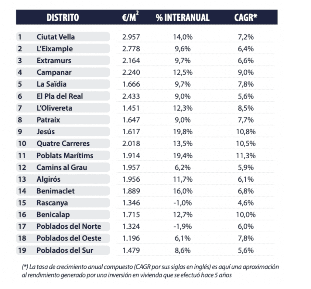 Valence intensifie la tendance à la hausse des trimestres précédents et des augmentations de prix supérieures à 8% et allant jusqu’à 19,8% sont observées dans 15 des 19 districts.