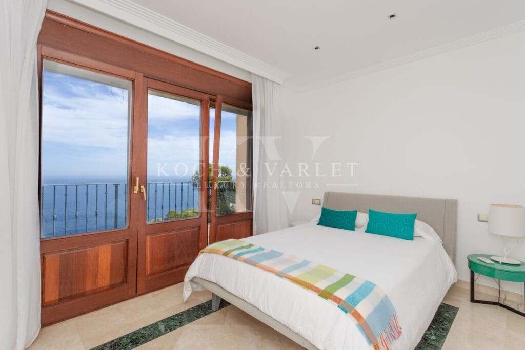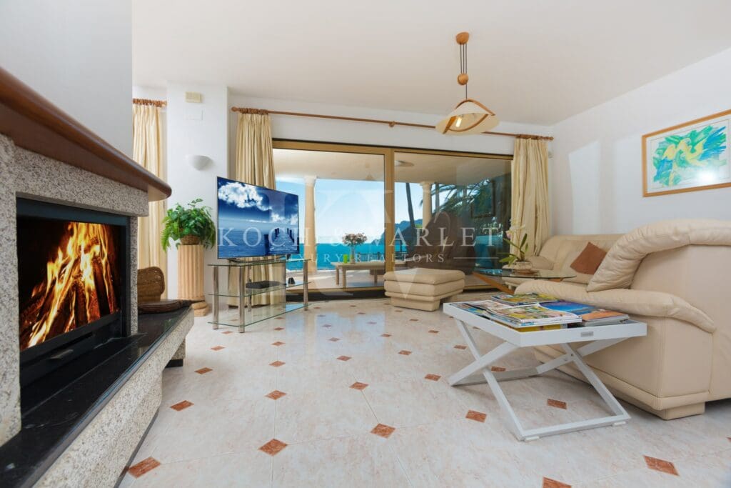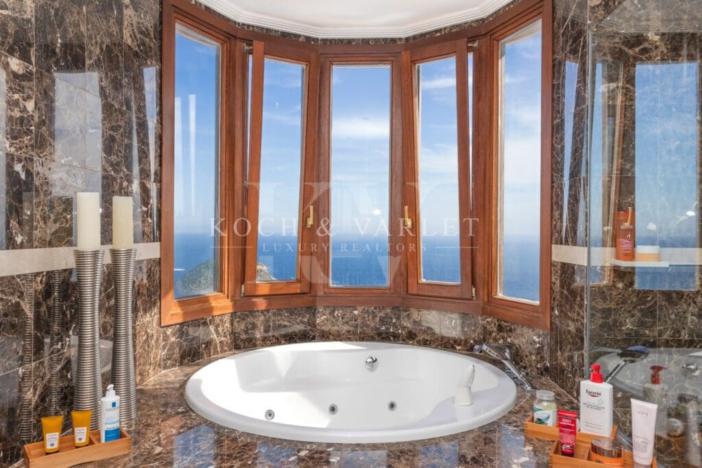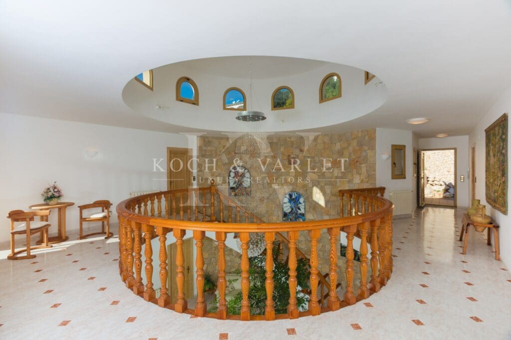 Comme tout dans cette propriété, les aménagements extérieurs sont d’une qualité extraordinaire, avec élégance et simplicité à la fois. L’imposante maison de conception architecturale moderniste, a à l’intérieur, un grand salon avec cheminée et vue imprenable sur la mer Méditerranée, une cuisine moderne et équipée, 4 grandes chambres doubles avec terrasses extérieures et 6 salles de bains. Nous soulignons les détails architecturaux de la maison, tels que la double hauteur du hall d’entrée, orné d’un mur en pierre naturelle et de détails en mosaïque.