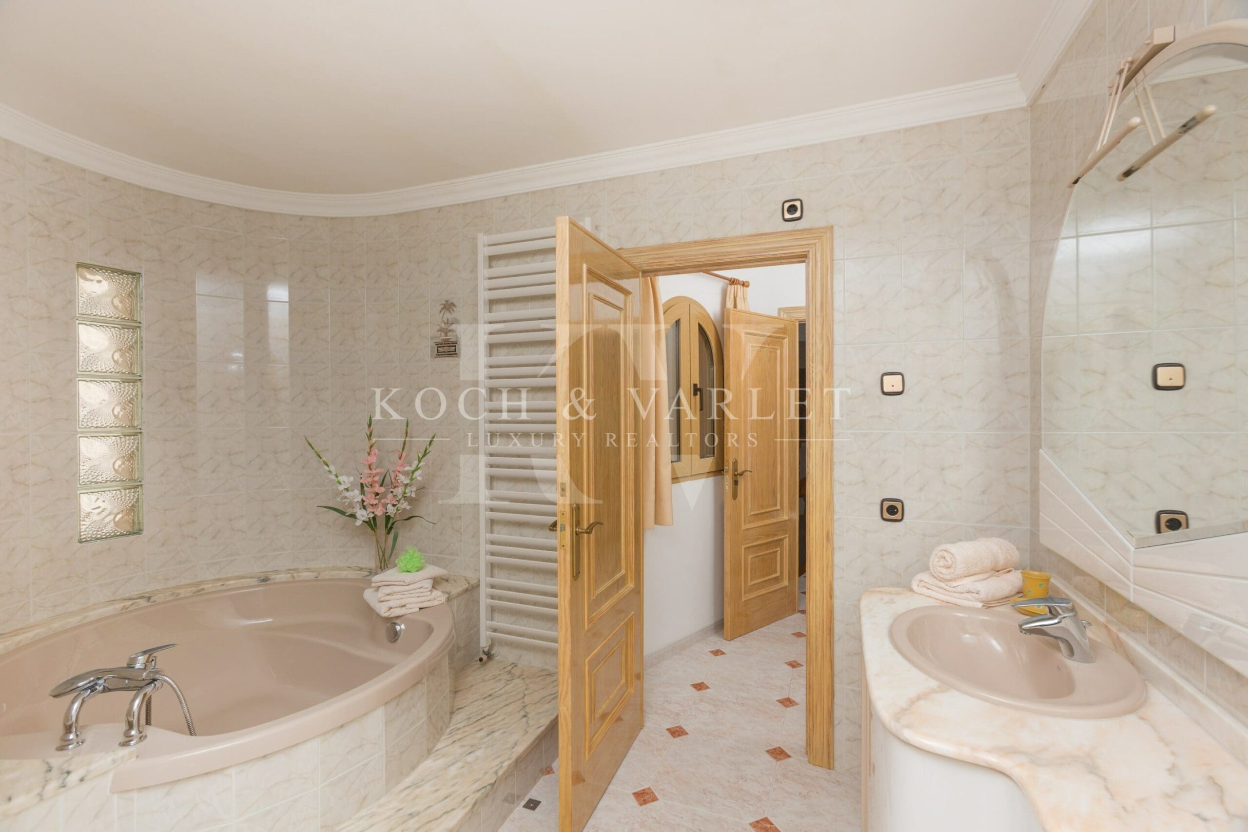 Une villa aux dimensions exceptionnelles, composée de 10 chambres et 12 salles de bains. Répartie sur deux étages, elle dispose de deux grandes piscines, 2 bureaux, 3 salons, une salle de sport privée, un double garage, une cuisine entièrement équipée, un bar extérieur, un appartement privé ainsi que de grandes terrasses ensoleillées et des espaces couverts.