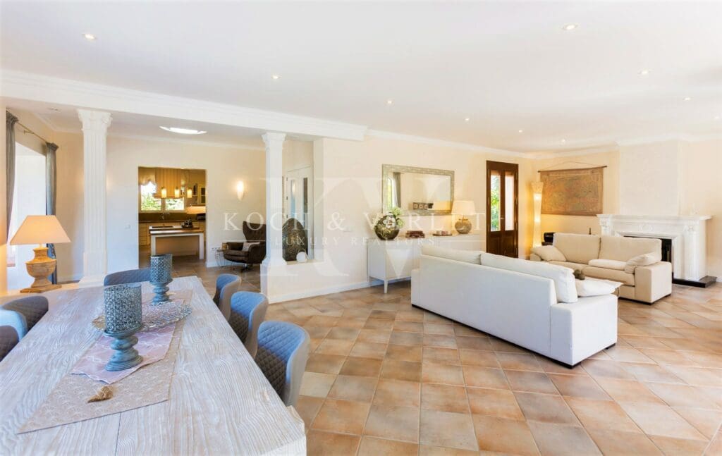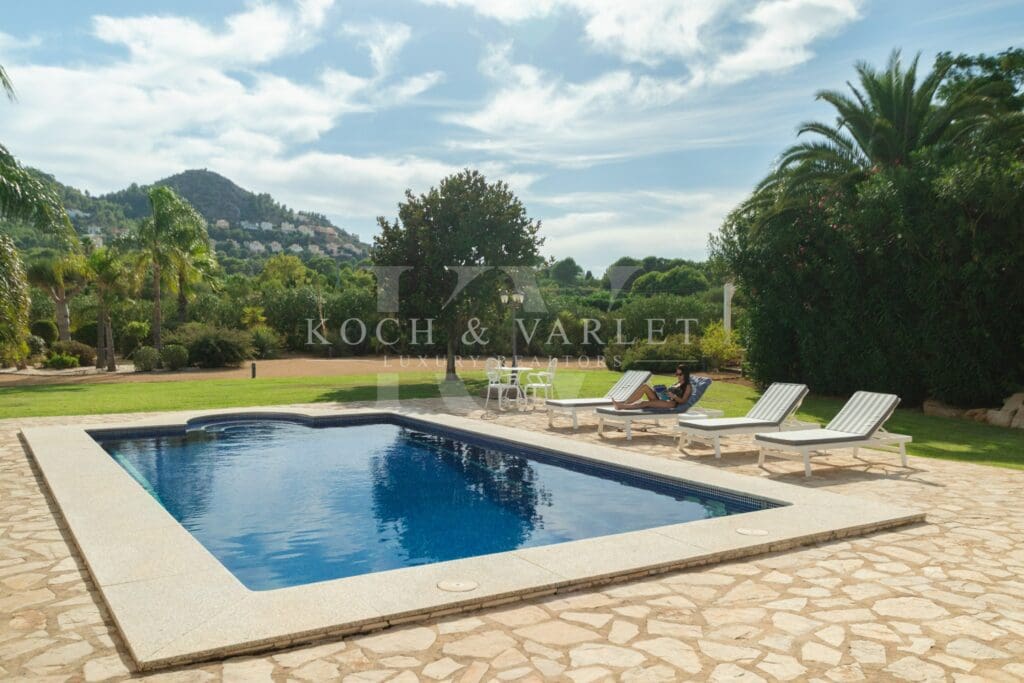 La villa a été entièrement rénovée tout en conservant son charme traditionnel. Situé sur un terrain de 4000m2, il offre une grande intimité et tranquillité ; ses jardins méditerranéens et ses pelouses verdoyantes sont parfaitement entretenus et regorgent de coins plus beaux les uns que les autres. Au centre se trouve une grande piscine de 10x5m, bordée de terrasses ensoleillées, parfaites pour profiter du soleil.
