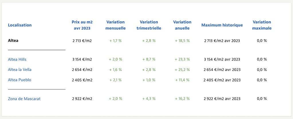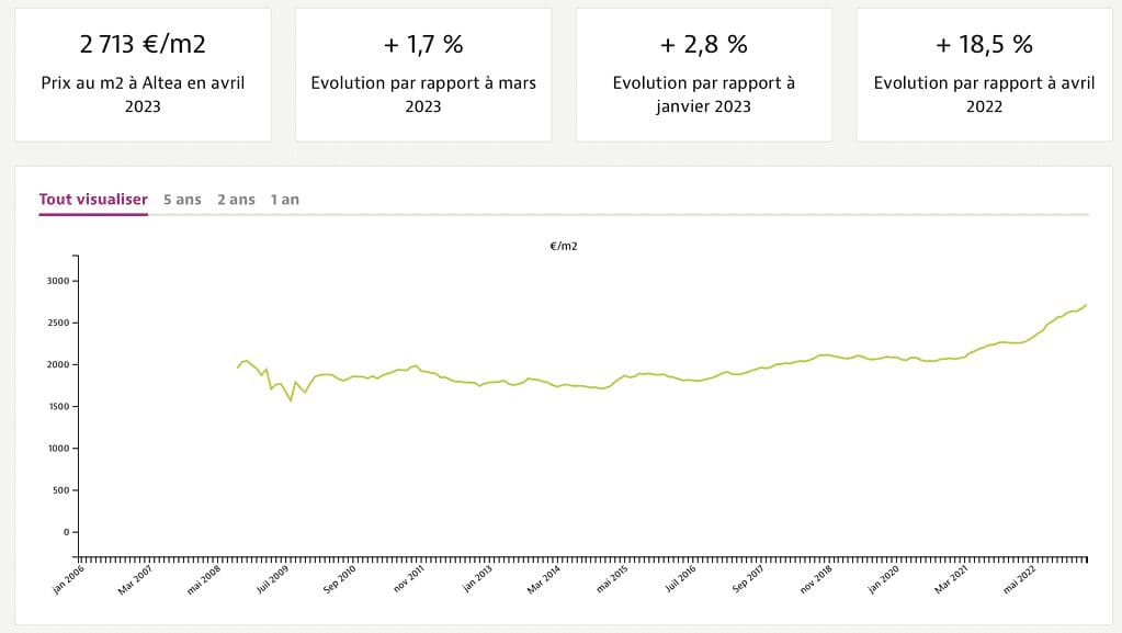 Évolution des prix de l’immobilier à Altea sur les 5 dernières années