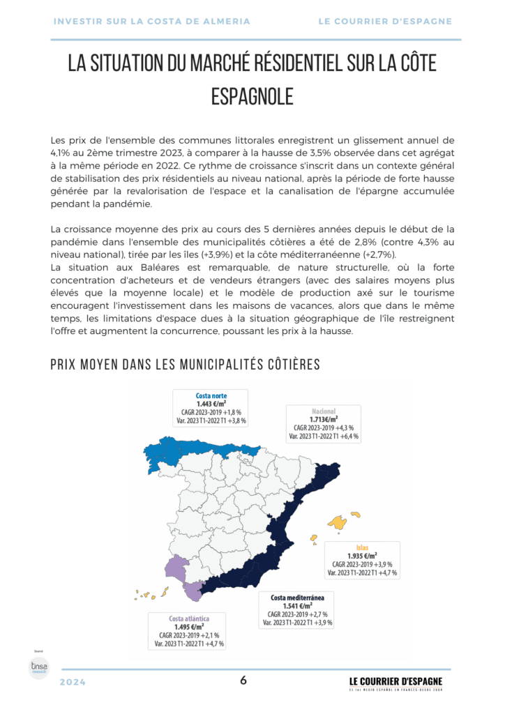La croissance moyenne des prix au cours des 5 dernières années depuis le début de la pandémie dans l’ensemble des municipalités côtières a été de 2,8% (contre 4,3% au niveau national), tirée par les îles (+3,9%) et la côte méditerranéenne (+2,7%).