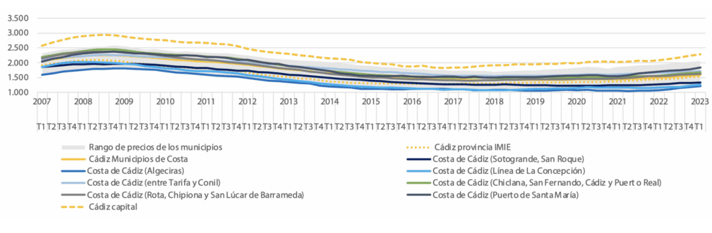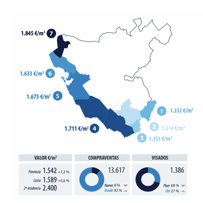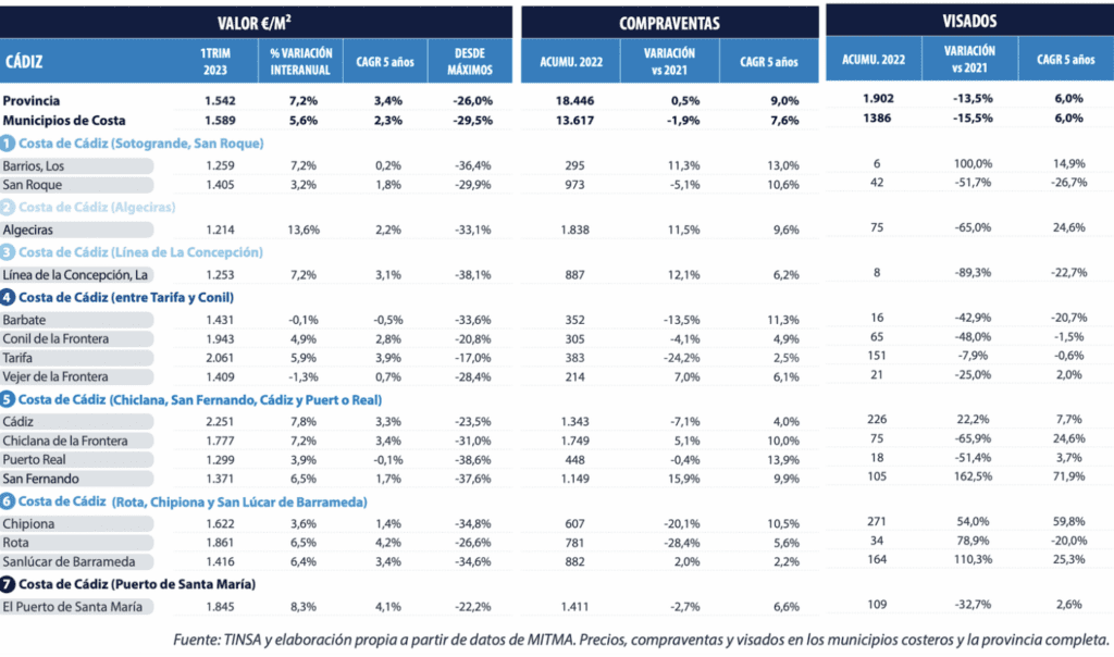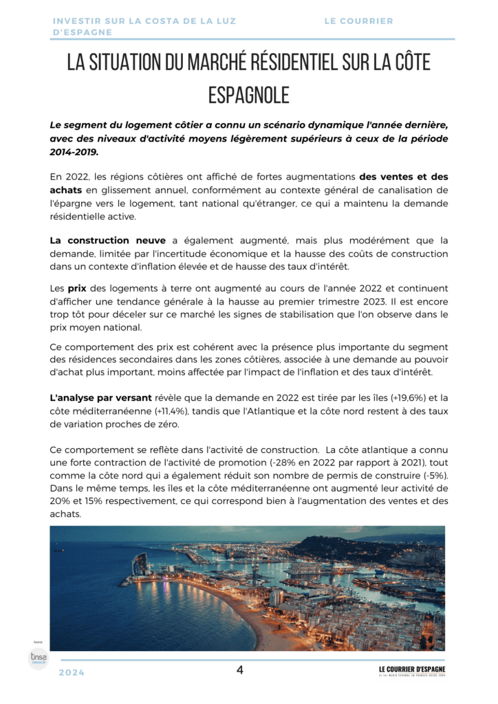 Les ventes ont enregistré une contraction qui modère l’activité après le fort rebond de 2021. Ce phénomène s’est également produit, de manière encore plus intense, dans les municipalités côtières de Huelva, la province voisine. En 2022, l’activité de développement a enregistré une contraction significative, ce qui est frappant après le fort rebond de 2021, qui a poursuivi la hausse des années antérieures à 2020. C’est la 7ème côte provinciale avec le plus grand nombre de visas.
