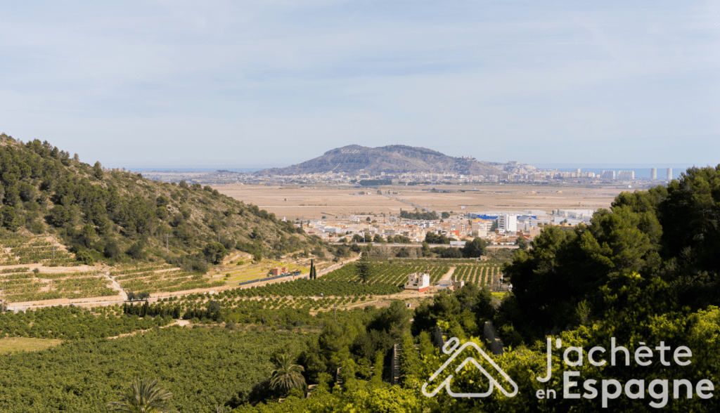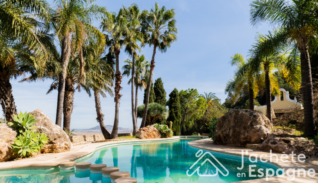 Elle est située en pleine nature, en hauteur, face à des champs d’orangers et à la montagne. Aucun voisin à l’horizon puisqu’elle dispose de plus de 10 hectares de terrain.