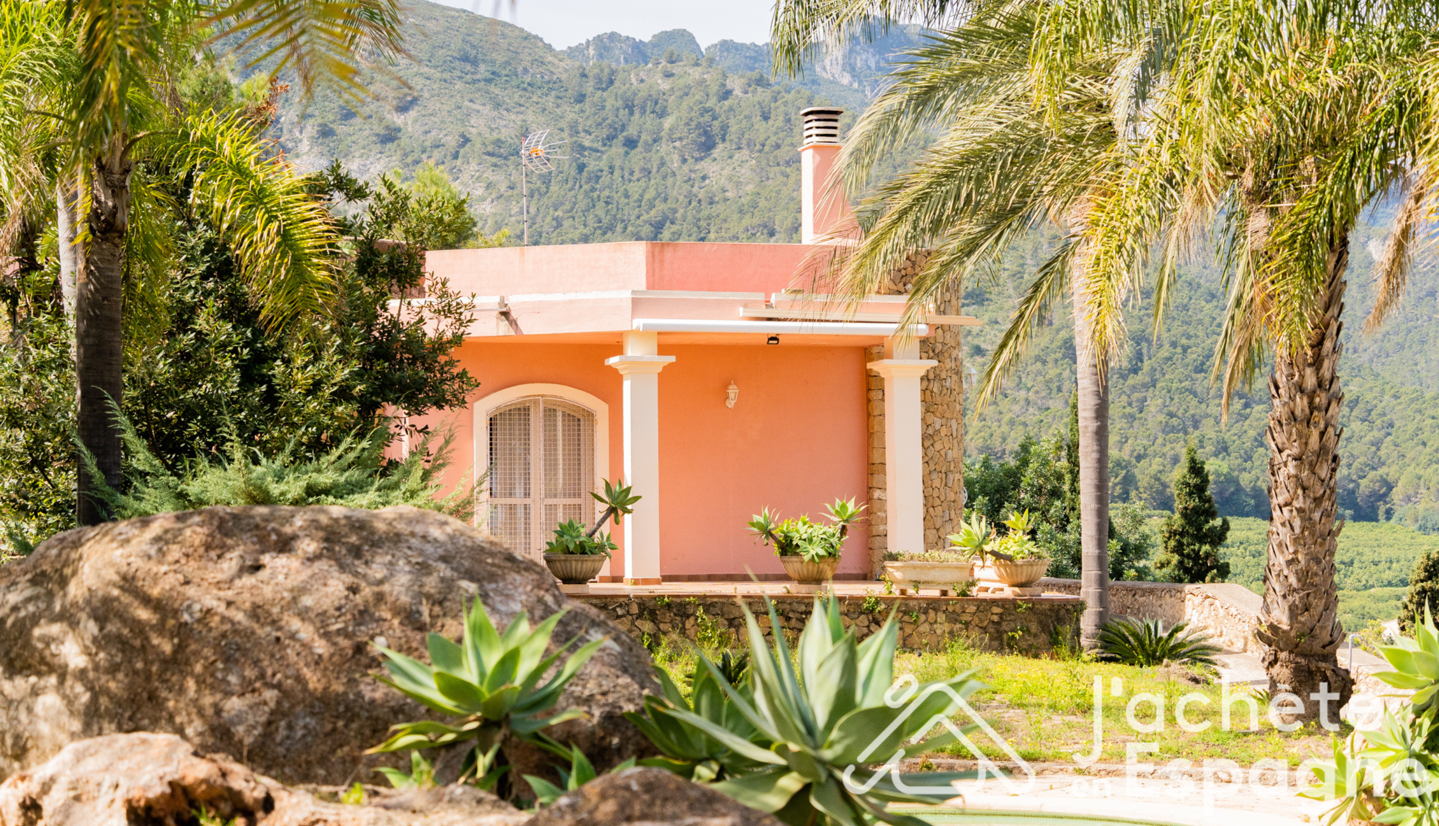 Elle est située en pleine nature, en hauteur, face à des champs d’orangers et à la montagne. Aucun voisin à l’horizon puisqu’elle dispose de plus de 10 hectares de terrain.