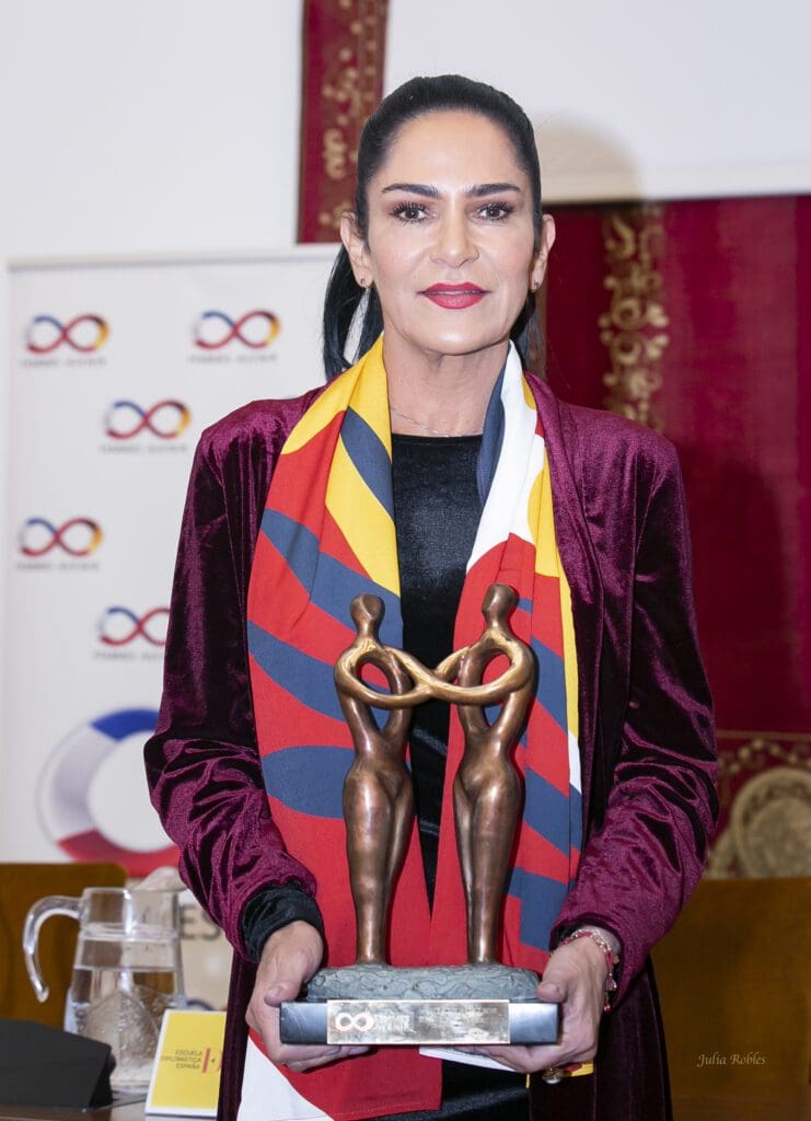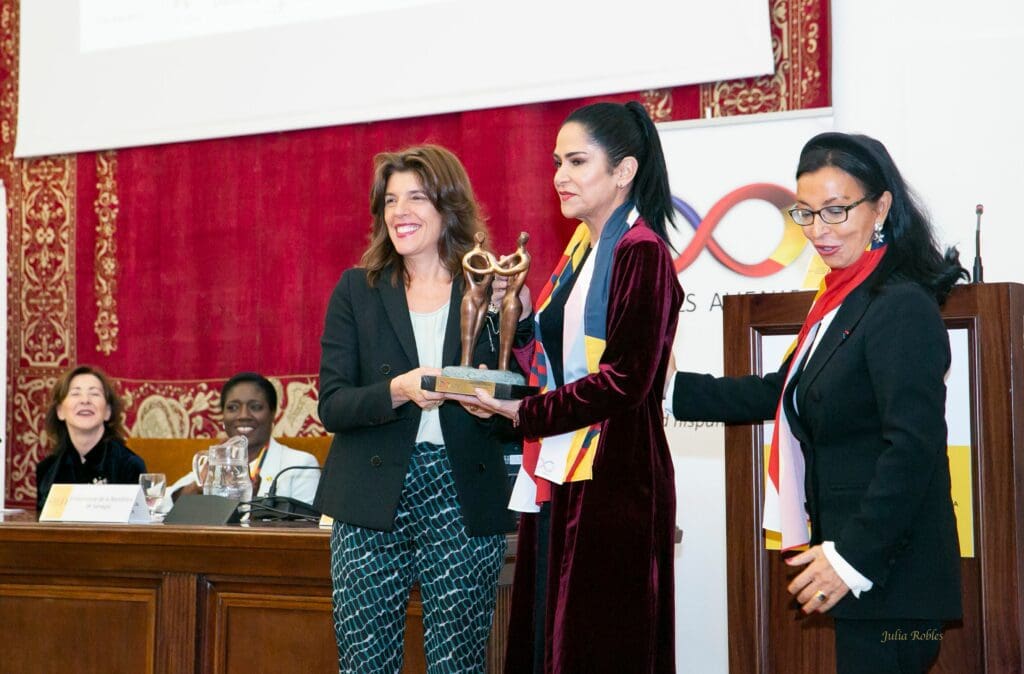 récompense les femmes du monde de l’ibérophonie et/ou de la francophonie qui se sont distinguées par leur action de défense des droits de l’homme. La secrétaire d’État aux affaires étrangères et aux affaires mondiales, Ángeles Moreno Bau était chargée de remettre le « Prix de Mujeres Avenir » à la journaliste, écrivain et activiste, Lydia Cacho.