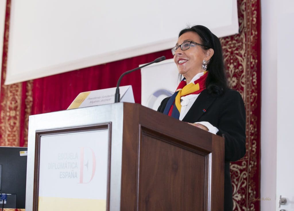 L’association d’amitié franco-espagnole Mujeres Avenir a organisé hier la « VIème Conférence Internationale sur les Femmes et la Diplomatie à Madrid », en collaboration avec le Ministère des Affaires étrangères, de l’Union européenne et de la Coopération et la revue « Diplomacia Siglo XXI« . L’événement a eu lieu dans l’Aula Magna de l’École diplomatique, sur le Paseo Juan XXIII sous le slogan « Opportunités et défis pour la participation égale des femmes aux décisions qui les concernent ».