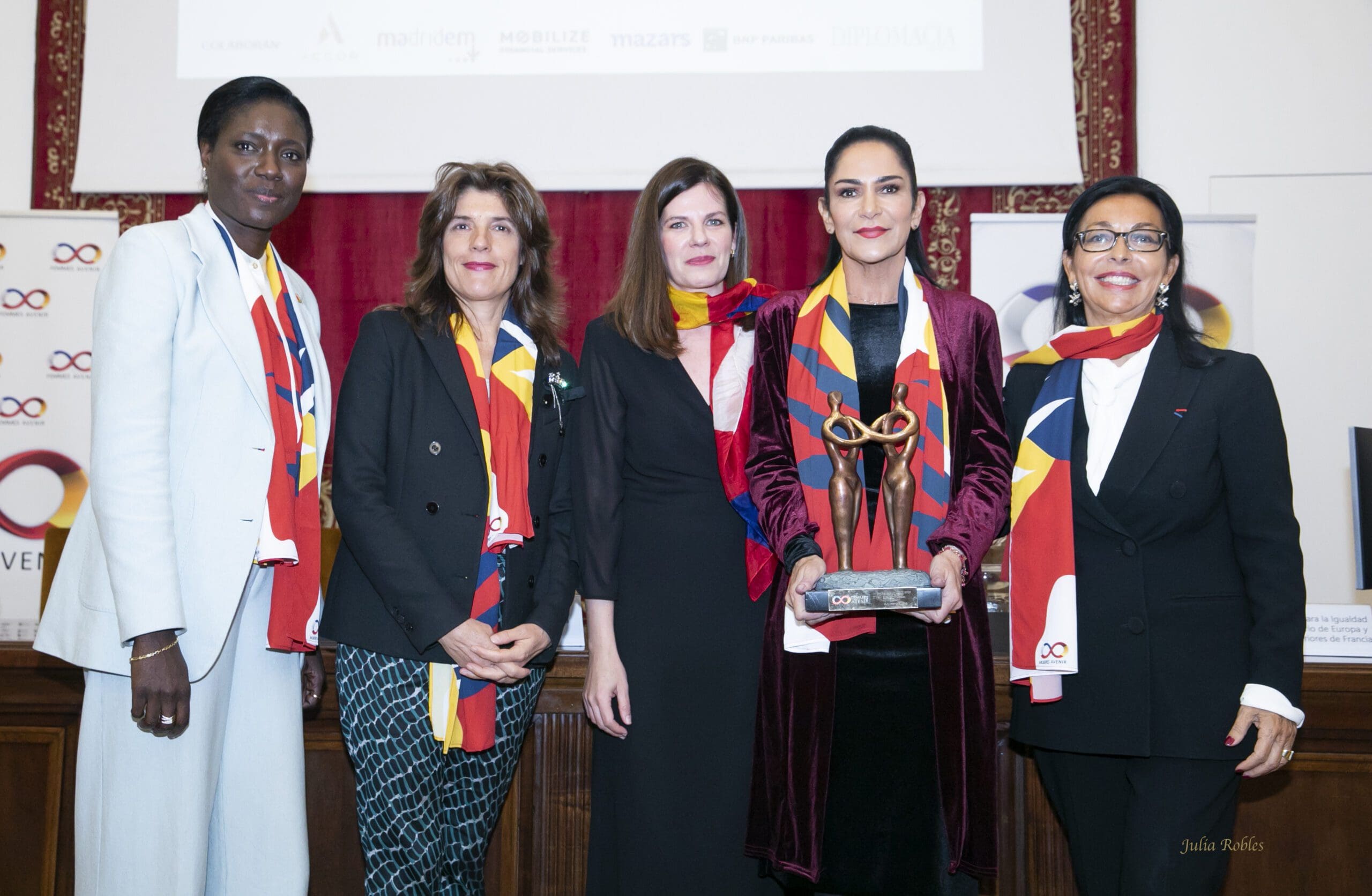 récompense les femmes du monde de l’ibérophonie et/ou de la francophonie qui se sont distinguées par leur action de défense des droits de l’homme. La secrétaire d’État aux affaires étrangères et aux affaires mondiales, Ángeles Moreno Bau était chargée de remettre le « Prix de Mujeres Avenir » à la journaliste, écrivain et activiste, Lydia Cacho.
