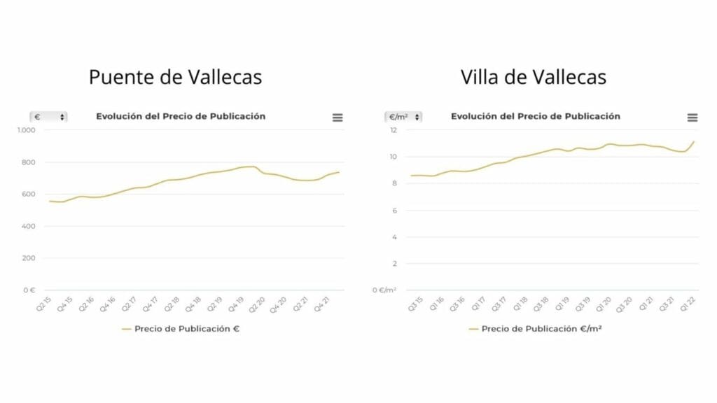 Si nous analysons également la croissance des prix par publication, Villa de Vallecas et Puente de Vallecas sont les troisième et sixième zones avec la plus forte croissance des prix dans la capitale, un aspect qui montre la réévaluation générale des terrains résidentiels dans les deux zones.