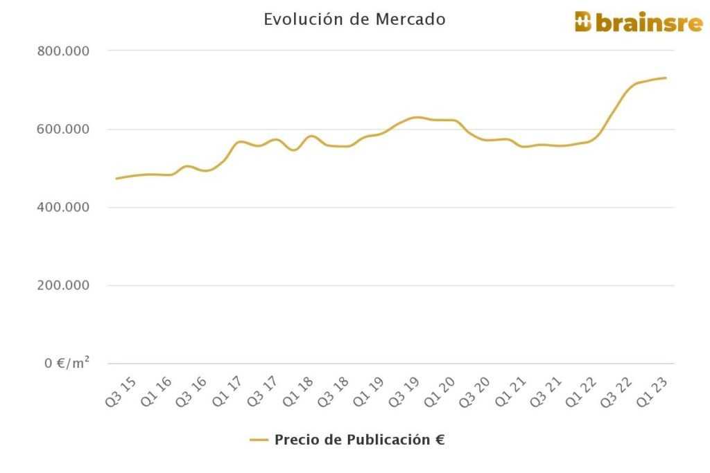 Concrètement, l’achat d’une propriété dans cette zone de la ville la plus peuplée d’Espagne coûte en moyenne 730.514 €, les unités à vendre ayant une superficie moyenne d’environ 113 m2.