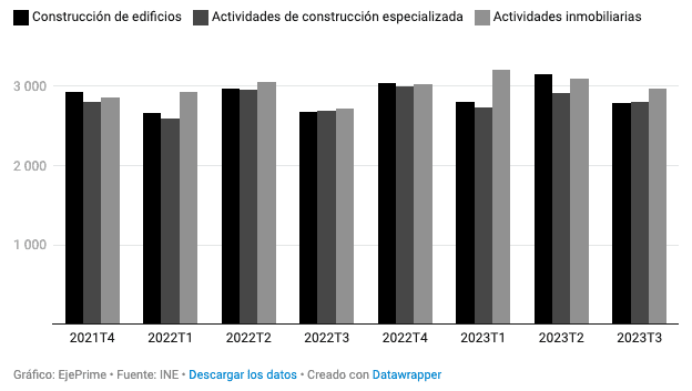 Le coût de la main-d’œuvre dans la construction de bâtiments a dépassé les sommets historiques du deuxième trimestre de l’année et se situe à 2.791€ par travailleur pour la construction de bâtiments et 2.808€ pour les activités de construction spécialisée.