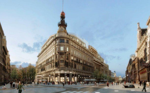 Un hôtel de luxe géré par le Four Seasons devrait voir le jour, ainsi qu’un centre commercial de 15 000 m2 et un parking pouvant accueillir jusqu’à 500 places. Il est situé à deux pas de Sol et de Gran Via.