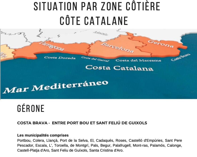 Malgrat de Mar, Santa Susanna, Pineda de Mar, Calella, Sant Pol de Mar, Canet de Mar, Arenys de Mar, Caldes d’Estrac, Sant Vicenç de Montalt, Sant Andreu de Llavaneres, Mataró, Cabrera de Mar, Vilassar de Mar, Premià de Mar, Masnou, El, Montgat