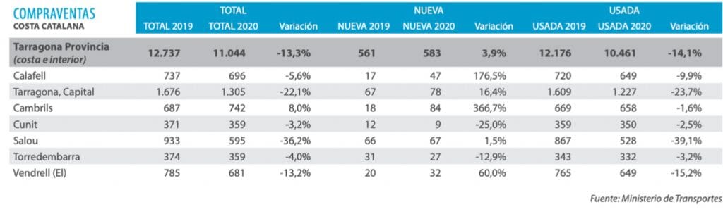 En 2020, les prix du premier trimestre dans la province ont enregistré des baisses modérées, affectant les communes avec une intensité différente, Cambrils et Salou se distinguant par les baisses les plus importantes. Il existe une nette divergence entre les marchés de la construction neuve et du logement d’occasion en termes de comportement des prix, les prix du neuf se sont stabilisés et les baisses se sont concentrées sur le logement d’occasion. De même, les tarifs de location ont été maintenus.