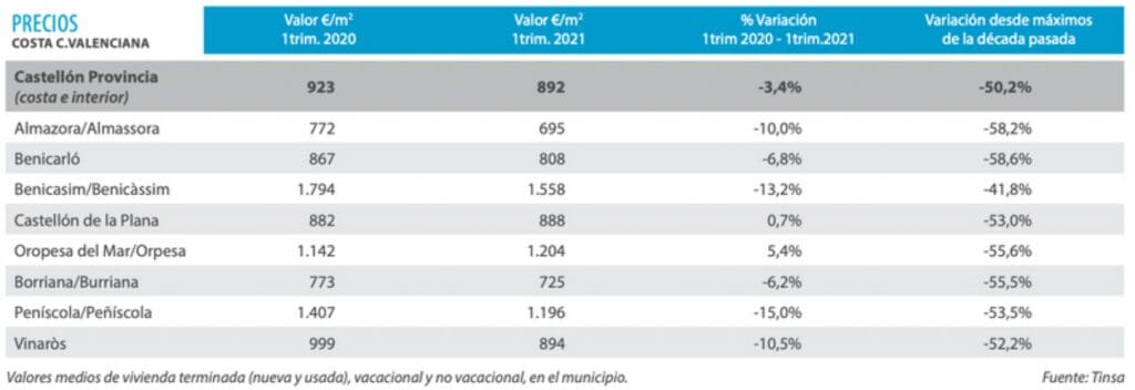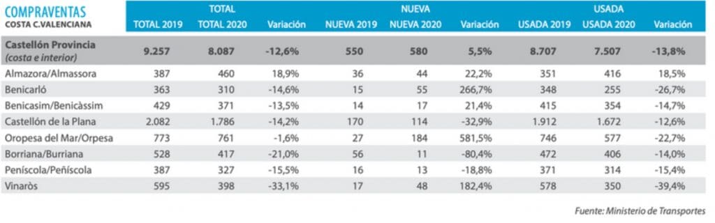 Après une longue période nécessaire pour résorber le stock élevé hérité de 2008, et une légère baisse des prix courant 2019, laissant présager une stabilisation, la zone a connu un coup d’arrêt sans reprise d’activité dans toutes les communes. Benicàssim et Oropesa del Mar se distinguent par une certaine réactivation.