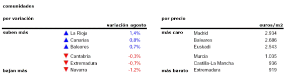 Le prix a été réduit de 6 autonomies, la Navarre étant la région où les baisses ont été les plus ressenties, les attentes des propriétaires ayant été réduites de 1,2%. Viennent ensuite les baisses d’Estrémadure (-0,7%) et de Cantabrie (-0,3%). La plus forte augmentation a toutefois eu lieu à La Rioja (1,4%), aux Canaries (0,8%) et aux Baléares (0,7%).
