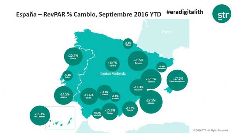 Le « RevPar » de Madrid n’est pas en reste et le taux d’occupation a dépassé les 70%. La plus forte hausse du RevPar est constatée à Alicante avec +27%. Il faut dire que les autorités locales ont su s’ouvrir aux compagnies aériennes étrangères qui y déferlent depuis 2 ans.